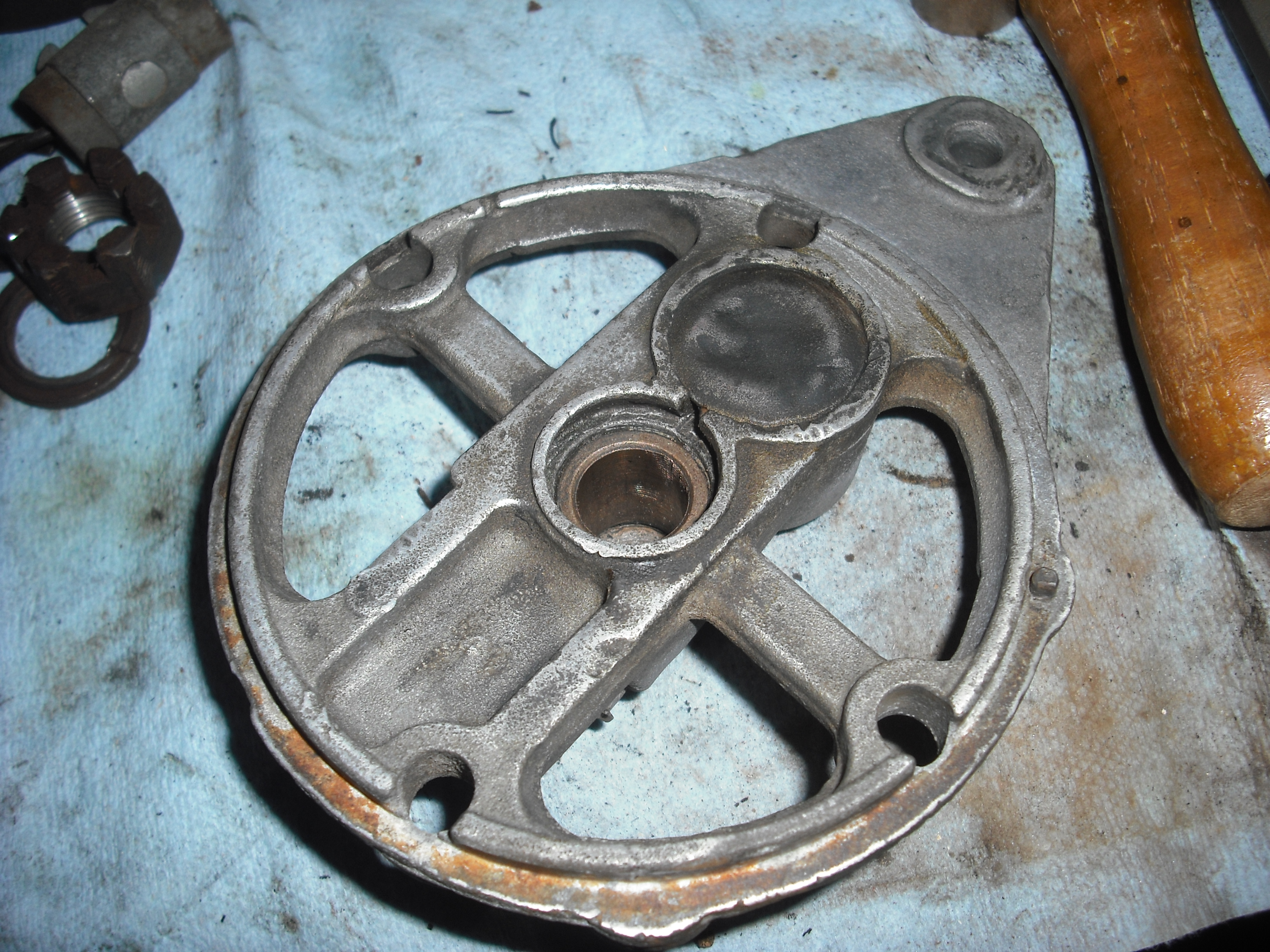 This end of the generator where the brass(?) bushing lives. Getting the old one out was interesting. I don't think I'd replace it if I had to do it over again. |